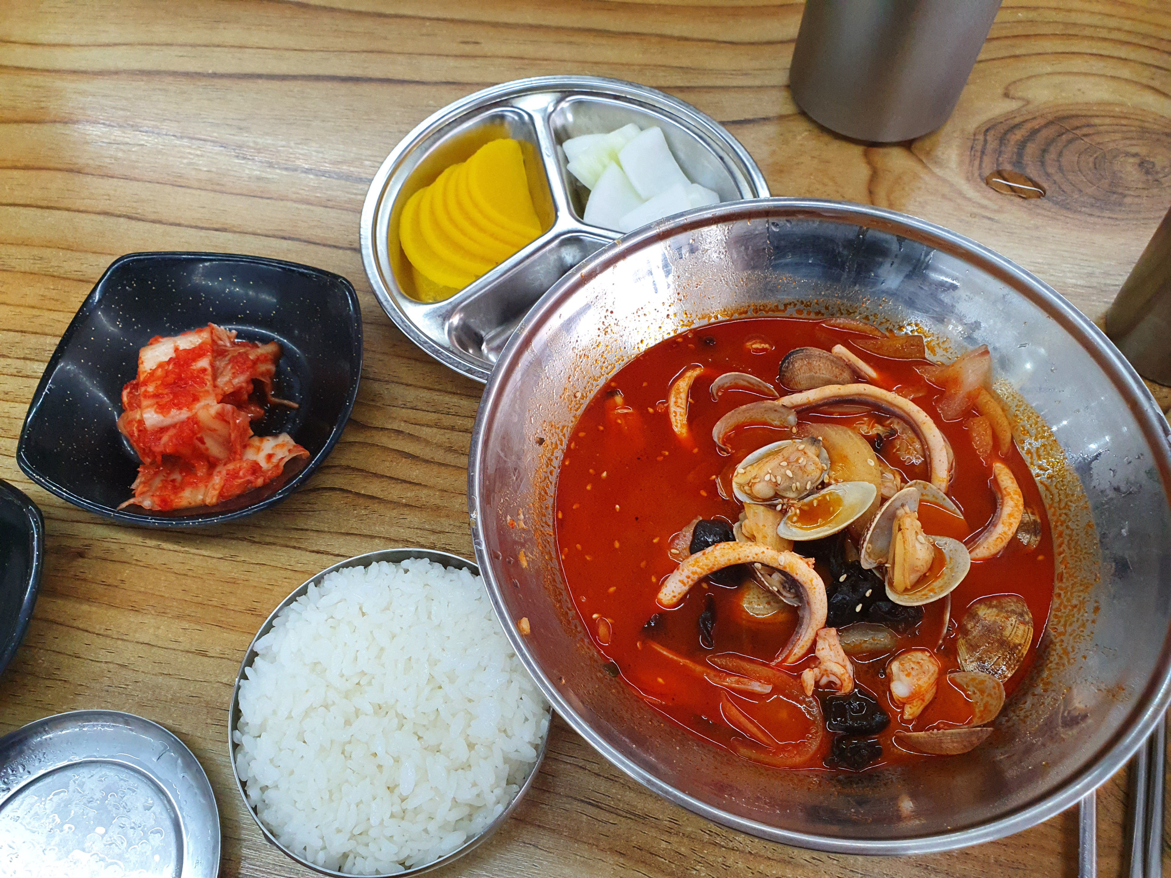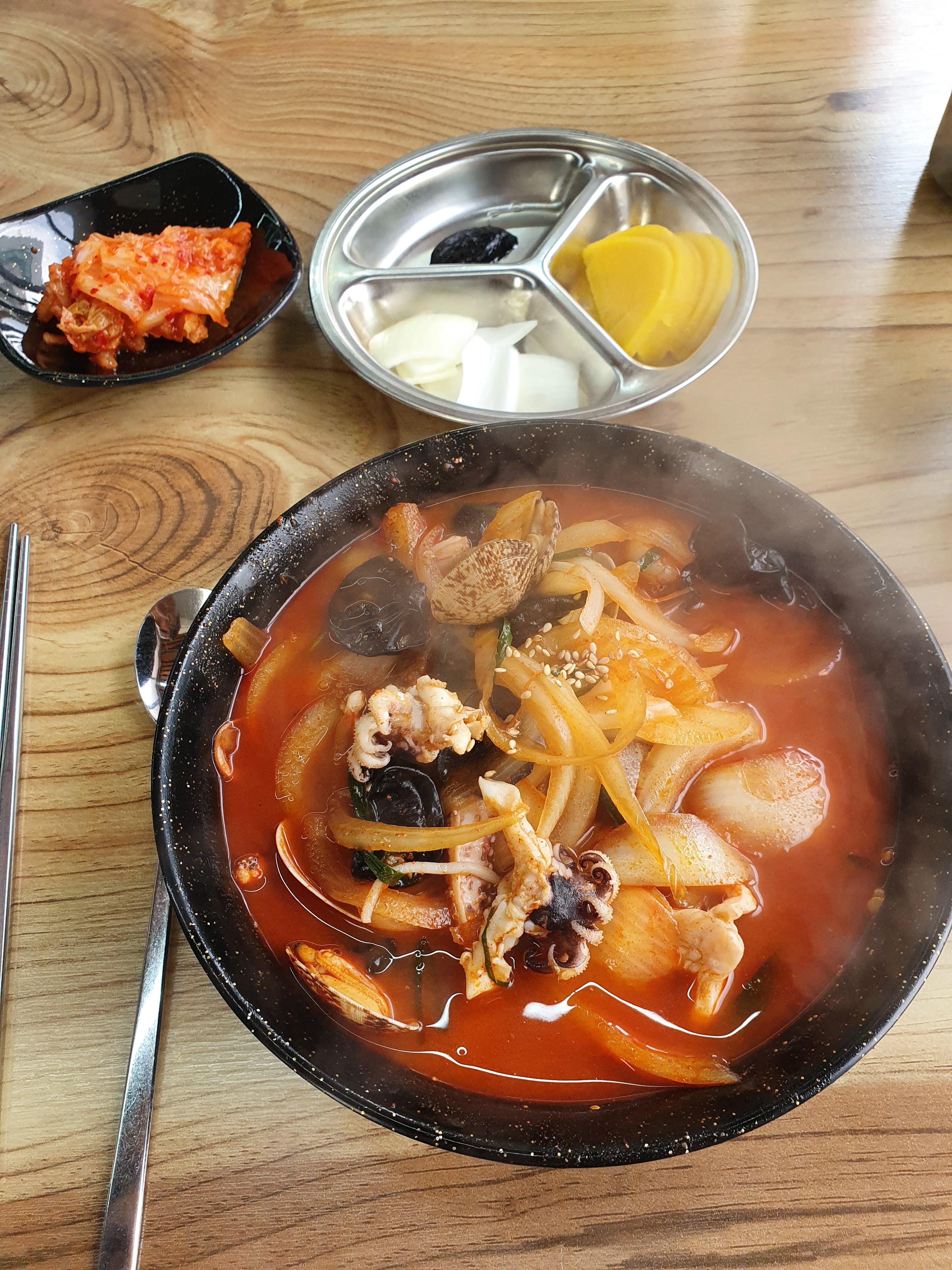 사진에 보이는것과 같이 쭈꾸미, 바지락, 오징어 이것저것 다들어가있다 ( 삼선짬뽕아니다 )