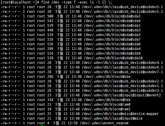 find /dev -type f -exec ls -l {} \;