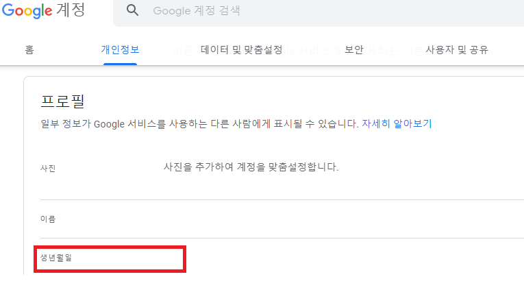 얼른 내 정보에 들어가서 생년월일을 업데이트 해주자.