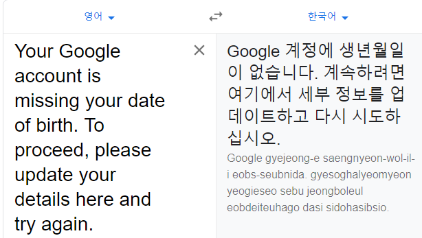 Your Google account is missing your date of birth. To proceed, please update your details here and try again.