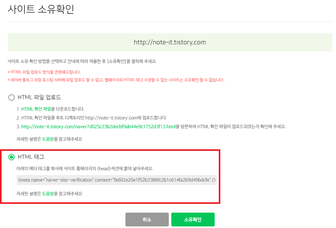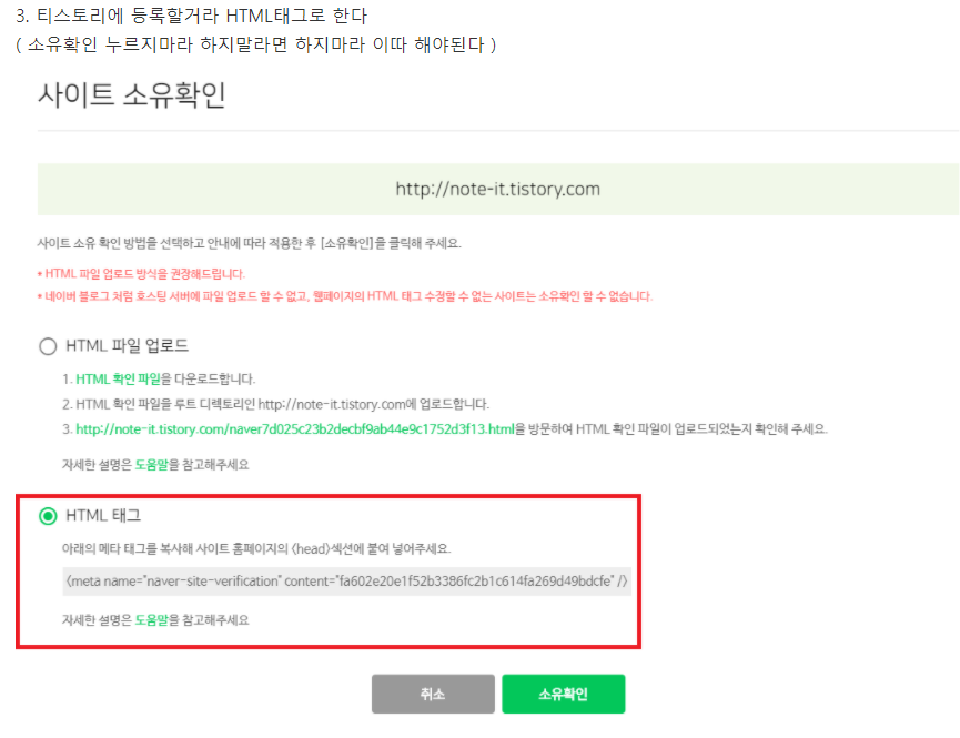note-it.tistory.com/7 [네이버 검색등록] 네이버 웹마스터 도구 등록 나의 티스토리가 생긴지 1일차 모두가 나의 블로그로 와서 조회수 오조오억이 됬으면한다 그래서 네이버님한테 내 사이트좀 홍보