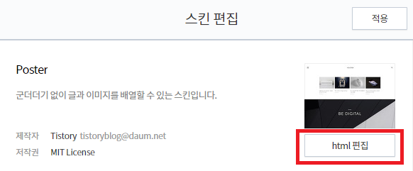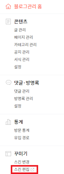 4. 내 티스토리의 홈페이지 설정 중 스킨편집으로 들어간다