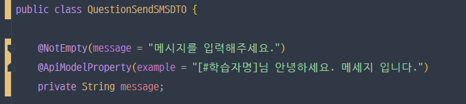Controller에서 @RequestBody로 받는 DTO중 @ApiModelProperty(example = "") 부분에 괄호가 들어가있나 체크해보자