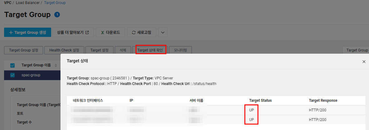 - Target상태 확인을 진행했을때 Status가 Up으로 나온다면 성공이다