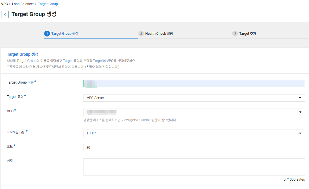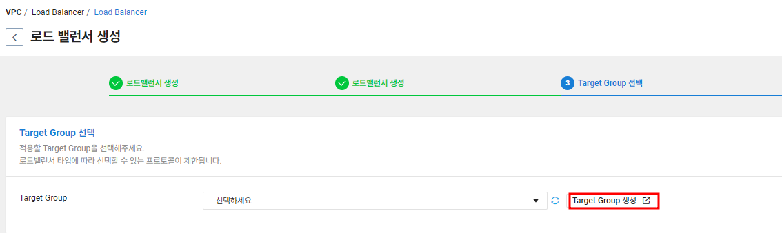- Target Group 이 없다면 생성을 진행하고 넘어가자