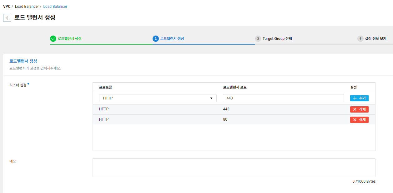 - 프로토콜은 HTTP, 80으로 설정 후 넘어간다