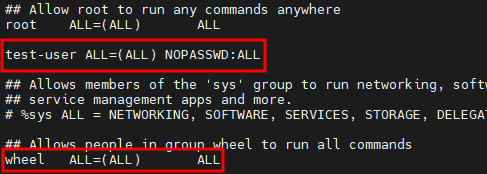visudo를 통해 수정을 아래처럼 진행 할것 이다